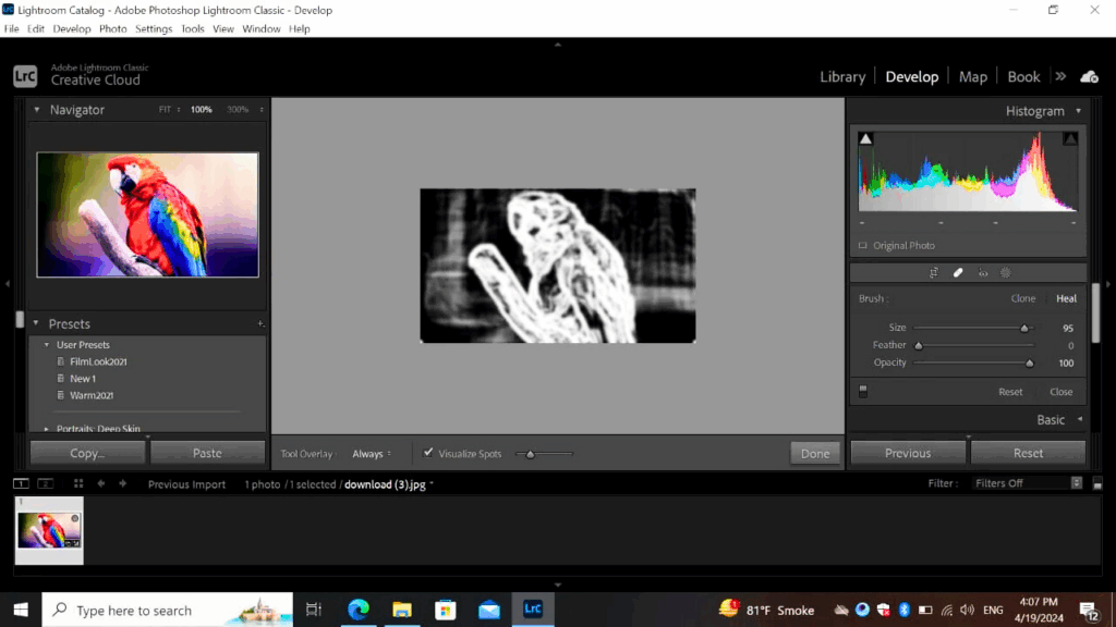 The healing tools are used to heal the image condition. It is located in the bottom right side of the Lightroom application and works automatically without any adjustment. It can improve the color and structure of the image automatically by just uploading the photo into the software.