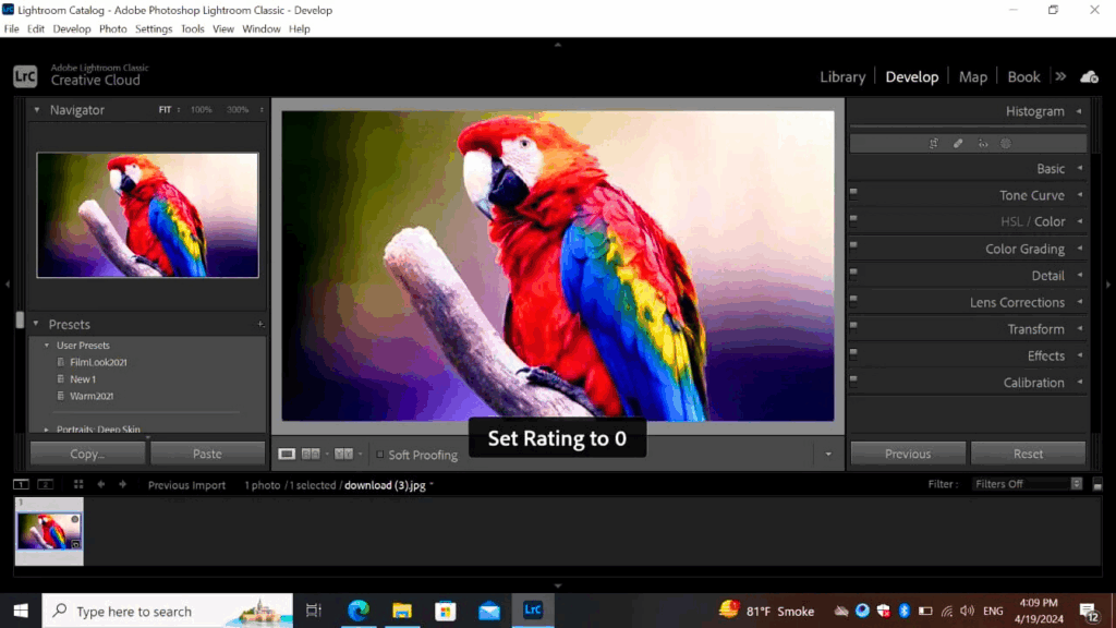 • If you are interested in applying different presets, select the one you choose next, copy the setting in the menu option, and paste the same settings on other images that you want to apply the same.