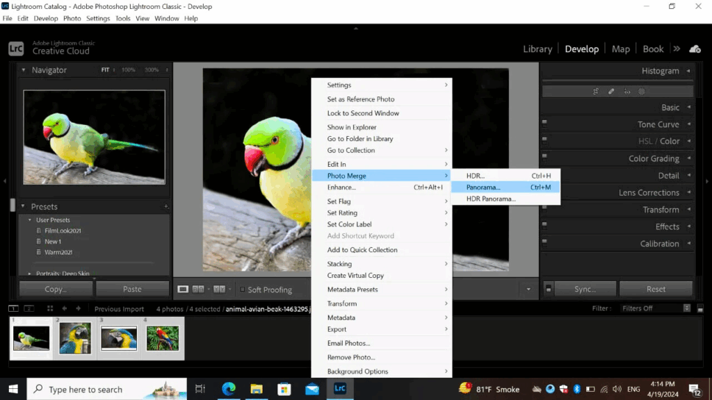 Users will be amazed that Lightroom HDR Merge and Pananromas have performed similar work to Photoshop. This feature is used for blending and arranging the images. For this process, choose the image >apply Merge and Panoramas. Then, you can merge different photos into one frame. This tool is perfect for Raw editing while maintaining the image’s original quality.